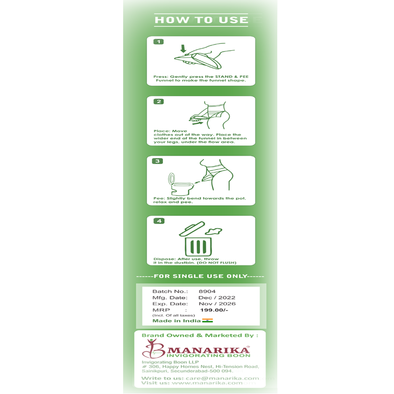 Mess-Free: The user has to simply position the wider end of the device onto their crotch and keep it angulated towards the toilet. The unique shape of the female urination devices ensures no spillage, splashback, or leaks.